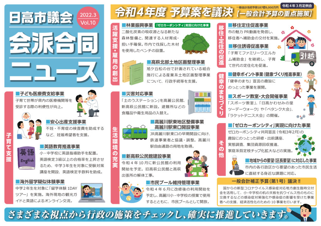 会派合同ニュースVOL.10 2022年3月30日 最終更新日時 : 2022年3月30日 hiroyuki FacebookBluesky 共有: Facebook で共有するにはクリックしてください (新しいウィンドウで開きます) Facebook クリックして X で共有 (新しいウィンドウで開きます) X いいね:いいね 読み込み中…FacebookBluesky